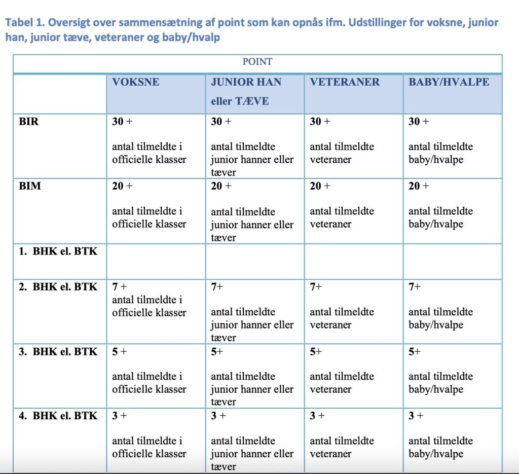 Alle officielle udstillinger – både i DKK og KSS regi – i løbet af kalenderåret er point givende.